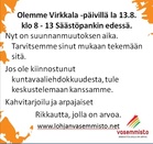 Olemme Virkkala -päivillä la 13.8. klo 8 - 13 Säästöpankin edessä.