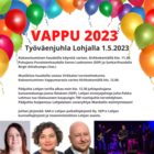 Työväenjuhla Lohjalla 1.5.2023 Kokoontuminen haudoilla käyntiä varten, Kirkkokentällä klo. 11.20. Puhujana Punaistenhaudalla Sanna Laaksonen (SDP) ja Sankarihaudalla Birgit Aittakumpu (Vas.) Musiikista haudoilla vastaa Virkkalan torvisoittokunta. Kokoontuminen Vappumarssia varten Kirkkokentällä klo. 12.00. Pääjuhla Lohjan torilla alkaa noin klo. 12.30 juhlapuhujana kansanedustaja Joona Räsänen (SDP), Lohjan sivistysjohtaja Juha-Pekka Lehmus tuo tilaisuuteen kaupungin 700 vuotisjuhla tervehdyksen. Pääjuhla huipentuu Lohjalainen coveryhtye Mankelin esiintymiseen! Juhlan järjestää: SAK:n Lohjan paikallisjärjestö Ry, SDP:n Lohjan kunnallisjärjestö ja Vasemmistoliiton Lohjan osasto.