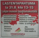 Ohjelmassa: - Kasvomaalausta - Lelunvaihtopiste - Poniratsasusta - Satuhetki - Pelejä - Onnenpyörä - Museon nukkekoti ja kotikaupunkimme näyttely - Mehu ja pulla tarjoilu